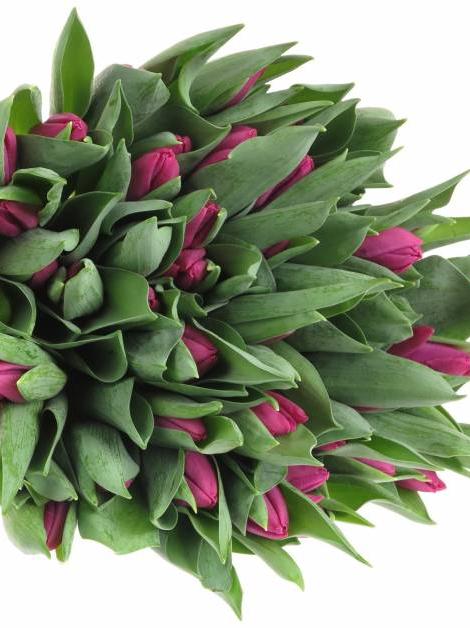 Violetinių tulpių puokštė 100 vnt.